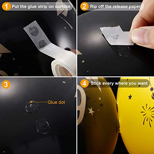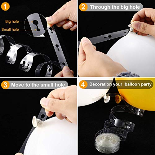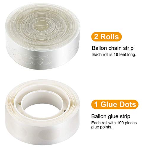 Easy to use: Easy to install and paste.This balloon tying tool makes tying balloons easier and painn-free for your finger. See how to use this tool please refer to the product pictures. Include: 1 pc removable glue dots roll of 100 points 2pcs 5m tape strip roll with 110 pieces holes. Applications: It is quick and easy and perfect for a DIY balloon arch. The glue points are key in creating the fullness. Suitable for making balloon garland DIY balloon arch or bunting for Brthday party wedding bridal or Small shower. Simple to work holding balloons in place even on windy days. Occasion: Party wedding venue party corporate anniversary annual meeting Brthday home decoration. Material: Manufactured out of good quality plastic.