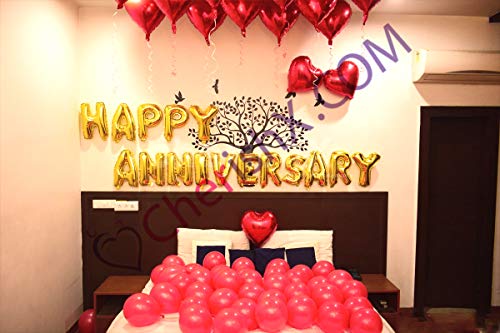 Decoration Kit with Happy Anniversary Red hert Shaped Foil Balloons