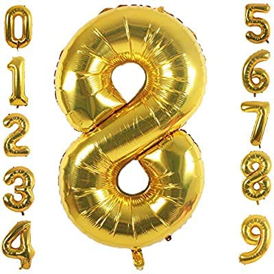 Edition:GOLD NUMBER 8These beautiful balloons will be a hit at your engagement partycelebration holiday Brthdayshow party activities or other fun event! These balloons also make great props for a photoshoot . They all have a self-sealing valve and easy to fill. Please note: Helium is required if you want the balloons to float.