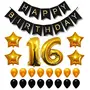 Happy Brthday Party Balloons Supplies & Decorations Set(Gold Number Foil Balloon+50 Gold & Black Latex Balloon+1 Black Happy Brthday Banner+ Four Gold Star Foil Balloons)- 16th Year