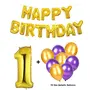 Number 1 Gold Foil Balloon and 50 Nos Purple and Gold Color Latex Balloon and Happy Brthday Gold Foil Balloon Combo