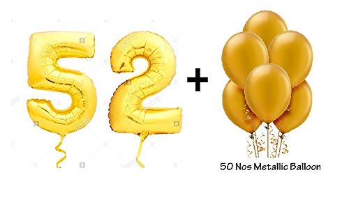 Number 52 Gold Foil Balloon and 50 Nos Gold Color Latex Balloon Combo