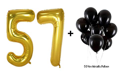 Number 57 Gold Foil Balloon and 50 Nos Black Color Latex Balloon Combo