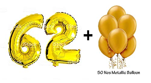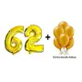 Number 62 Gold Foil Balloon and 50 Nos Gold Color Latex Balloon Combo