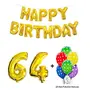 Number 64 Gold Foil Balloon and 25 Nos Polka Dotted Multi Coloured Latex Balloon and Happy Brthday Gold Foil Balloon Combo