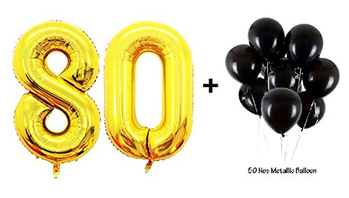 Number 80 Gold Foil Balloon and 50 Nos Black Color Latex Balloon Combo
