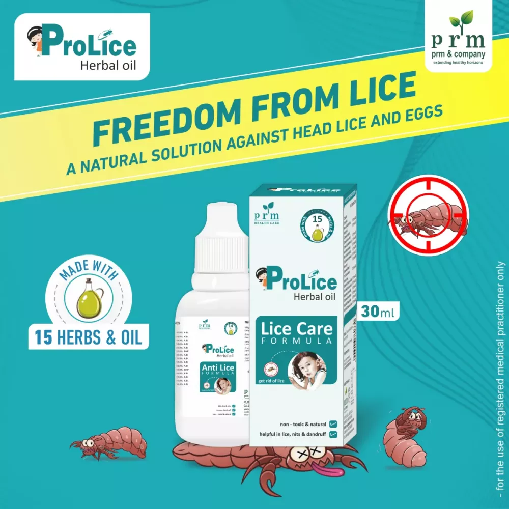 Prolice herbal lice care oil is made of 15 natural and insecticidal herbal ingredients like shikakai oil, tulsi oil, karanj oil, sitafal oil, coconut oil, til oil, neem oil and many more. that helps to remove lice, nits & their eggs, dandruff. it is also helpful in improving hair quality.