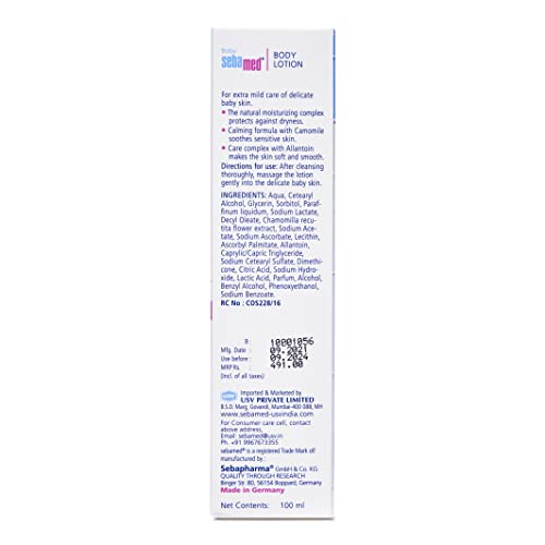 Sebamed Baby Lotion 100mldiv class="aplus"pIt is very important to keep a babyâs skin clean and moisturised. There are several baby care products that contain harsh chemicals and using these on his/her delicate skin can be harmful for such soft and sensitive skin. Babies should therefore be treated with utmost care and maintaining cleanliness is a must to maintain his/her health and growth. Sebamed body oil is ideal for infants from 0 to 10 years. It is so mild and soft that it can be used to clean the baby as soon as the umbilical cord is cut. Babies tend to develop skin problems like irritation itchiness dryness rashes and redness in no time. bSebamed oil/b is therefore a perfect solution to all such skin complications./p pbSebamed Baby Lotion/b keeps the skin soft and well moisturised in all weather conditions. Regular application keeps your babyâs skin healthy and glowing. In fact it works wonders for kids suffering from neurodermatitis. It has sugar tensed complex that moisturises the skin deep within thereby giving it a complete cover and shine. The lotion is free from skin alkali dioxin and paraben so that the sensitive skin of your little one doesnât fall prey to side effects. It absorbs within the skin cells thereby leading to a non-greasy and dry skin./p pThe Sebamed oil can be used many times in a day since you are required to constantly change the diapers in order to keep the bottom area of the baby clean and moisturised. Changing diapers leads to redness and pimples that keep babies uncomfortable throughout the day. bSebamed/b oil can therefore score high in this context since it has healing properties 100% soap-free and clinically tested.. Moreover it comes in a 100ml bottle which is sufficient enough to go for a month. So if you have been looking for a baby oil this is surely going to prove worthy for your babyâs sensitive skin./p/divSebaMed SPF 30 Lip Defense Stick 4.8gSebamed Lip Defense Stick SPF 30 For Dry And Chapped Lips - Protection Plus Prevent light induced blistering Protective smoothing care for the lips; Supports and protects the natural barrier function of the skin's acid mantle; Without preservatives; Product features: Against the irritating drying effects of environmental influences; Regenerates dry and chapped lips quickly and effectively alleviating irritation and inflammation with vitamin E and bisabolol (camomile extract) Nurtures sensitive lips with the intensive treatment properties of the essential plant extracts jojoba and rice bran protecting them from dehydration; Defends the tender lip tissue with UVA and UVB filters against sun burn and its consequences; Indications:Ideal care for dry chapped lips; Defends against UV rays.