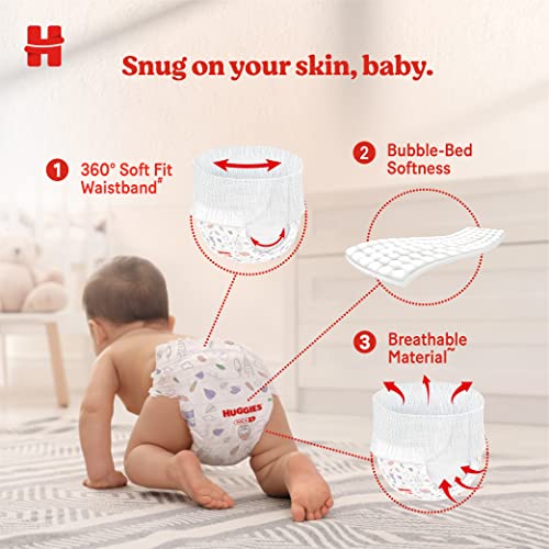 Huggies Complete ComfortTM Dry Pants provides 5 benefits in 1 diaper. With India's 1st Pants with Bubble Bed technology Huggies provides a soft inner bubble layer that wraps your baby in softness. Made from air friendly material our diaper pants help your baby's skin to breathe. Up to 10 Hours of Overnight Absorption allows you and your baby to have a comfortable sleep. Double leak guard provides extra padding to fight leakage and 360 degree Soft fit waistband ensures a snug fit for your baby. Our Pant style diapers are available in all sizes from Newborn/XS S M L XL and XXL sizes.