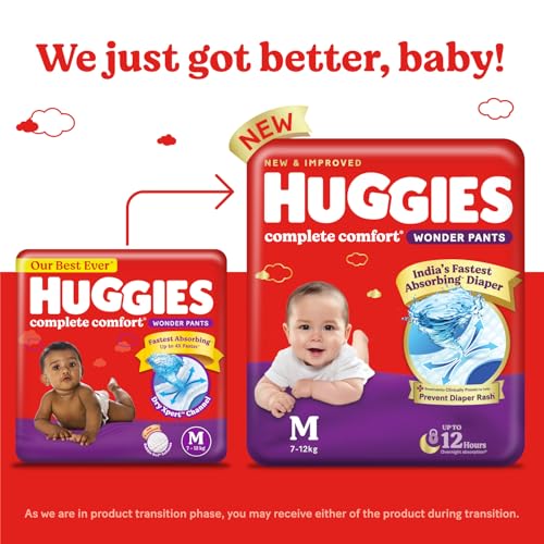 Huggies Complete ComfortTM Wonder Pants provides 5 benefits in 1 diaper. With India's 1st Pants with Bubble Bed technology Huggies provides a soft inner bubble layer that wraps your baby in softness. Made from air friendly material our diaper pants help your baby's skin to breathe. Up to 12 Hours of Overnight Absorption allows you and your baby to have a comfortable sleep. Special leak guard provides extra padding to fight leakage and Comfy fit waistband ensures a snug fit for your baby. Our Pant style diapers are available in all sizes from Newborn/XS S M L XL and XXL sizes.