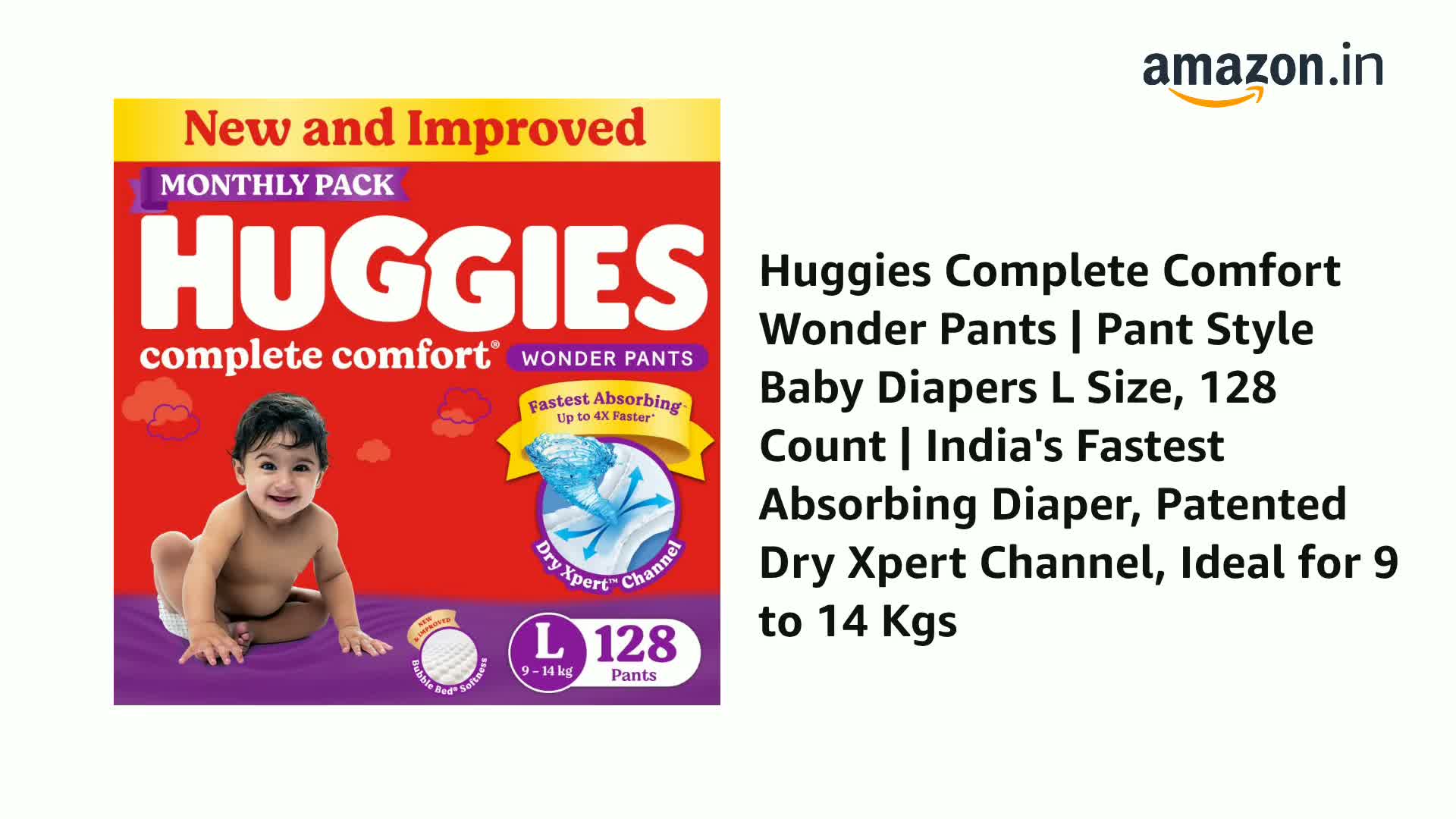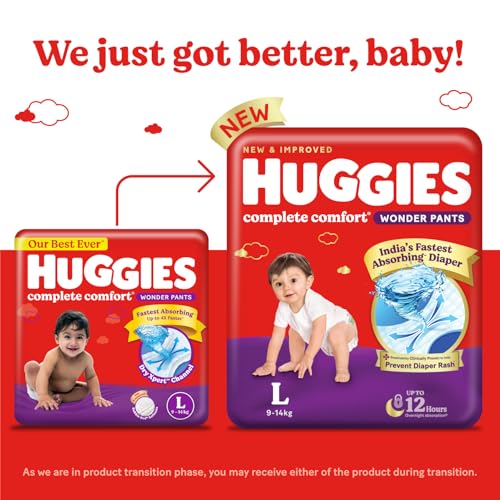 • New & Improved Huggies Complete Comfort Wonder Pants - India's Fastest Absorbing diaper with Patented Dry Xpert Channel; Large size / L Size baby diapers