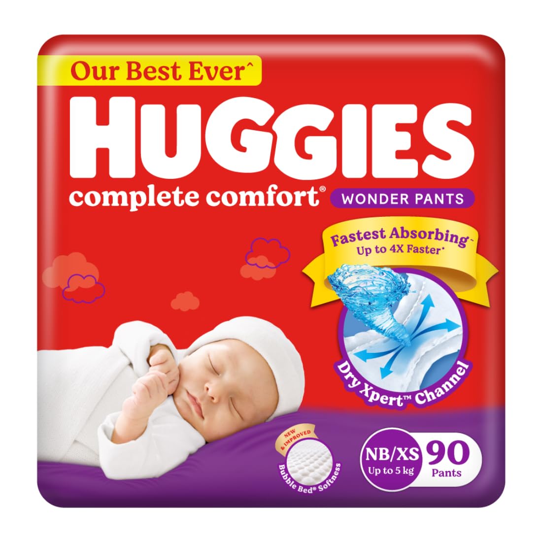 Introducing the New and Improved Huggies Complete Comfort Wonder Pants - India's Fastest Absorbing Diaper. Designed to provide maximum comfort and absorbency for your little one these are our best ever diaper pants. With our patented Dry Xpert technology that spreads urine evenly across the diaper - these diaper pants are now up to 4x Faster in absorbing urine ensuring your baby stays dry and comfortable. But that's not all! Our diaper pants also feature India's 1st Bubble Bed technology that provides a soft inner bubble layer to wrap your baby in ultimate softness. Made from air-friendly breathable material these pants help your baby's skin breathe keeping them comfortable throughout the day protecting them from rashes. And with up to 12 hours of overnight absorption you can both have a peaceful night's sleep. We understand how important it is to keep your baby dry at all times which is why our diaper pants come with double leak guard protection. This extra padding helps prevent thigh leakage ensuring there are no messes to deal with. Choose from a range of sizes of our Pant Style Diapers - including diapers New born /XS size diapers S size (small) diapers M size (medium) diapers L size (large) diapers XL size (extra large) diapers XXL size (double extra large) and diapers XXXL size (triple extra large) - making it suitable for babies of all ages and sizes. Trust Huggies Complete Comfort Wonder Pants for complete care and protection for your little one. Add the new and improved Huggies Complete Comfort Wonder Pants to your shopping cart today! Available on Amazon.
