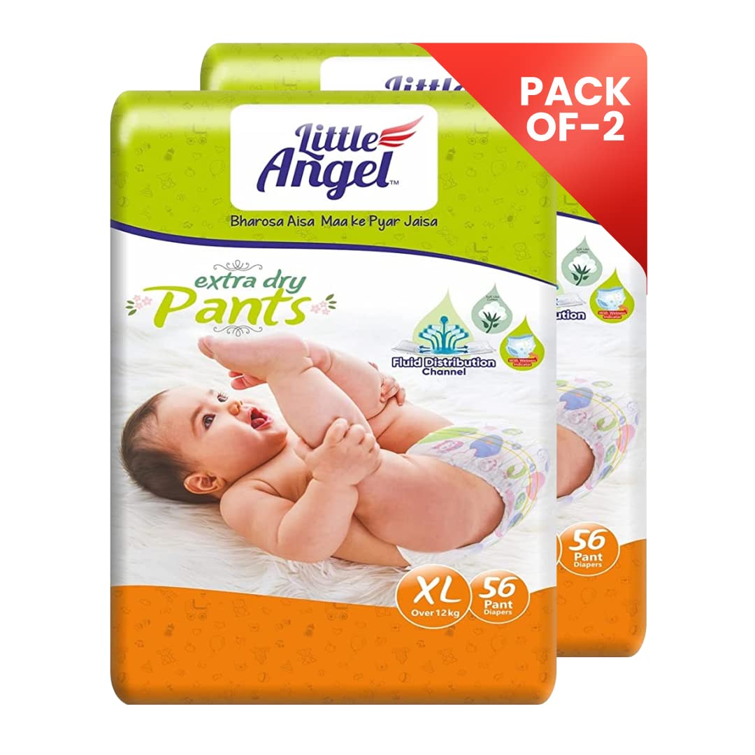 Little Angel Extra Dry Baby Pants Diaper Extra Large (XL) Size 112 Count Super Absorbent Core Up to 12 Hrs. Pack of 2 56 count/pack Over 12kg