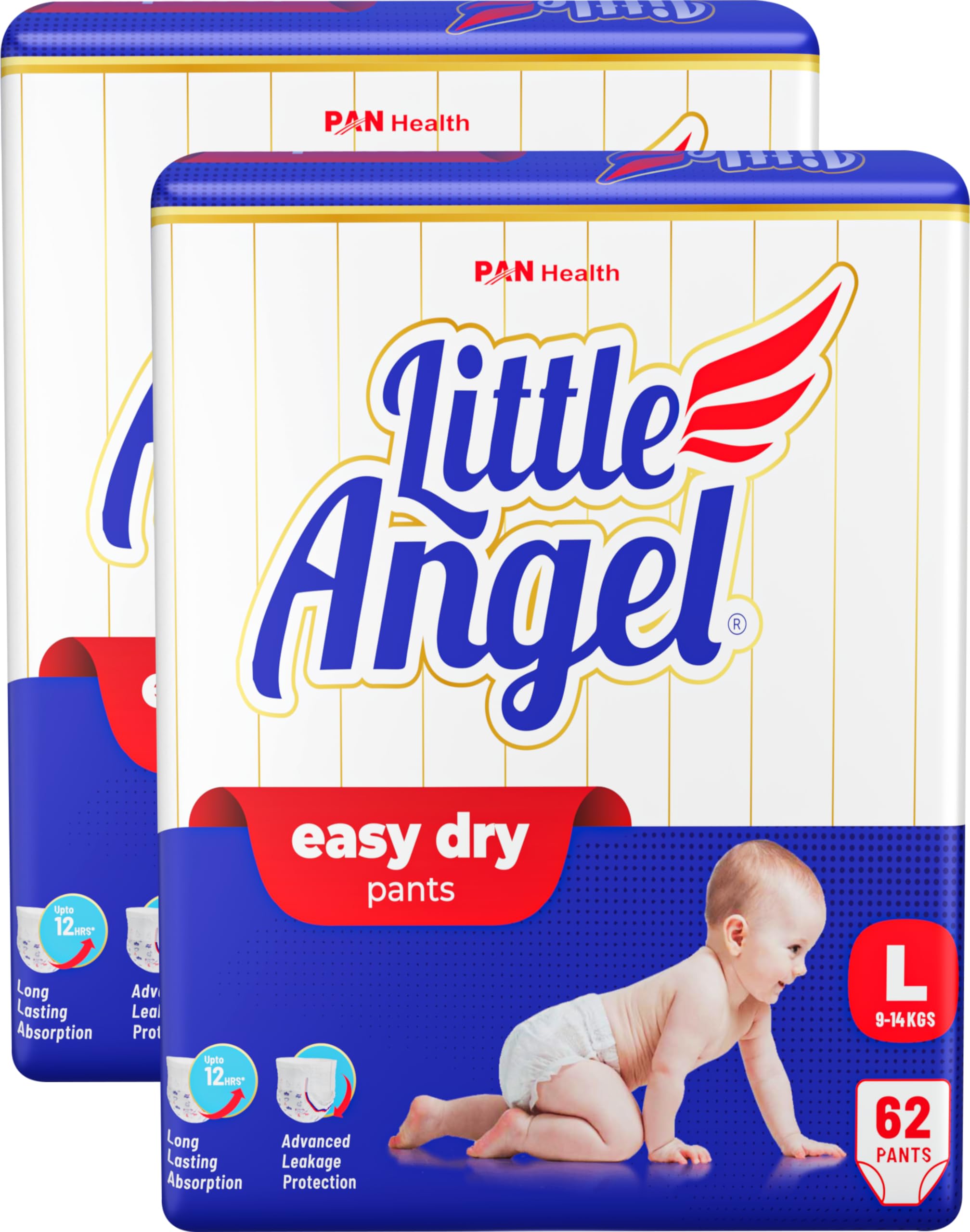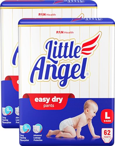 Little Angel Unisex Child Easy Dry Diaper Pants With 12 Hrs Absorption Large(L) Size, Pack Of 2,9-14 Kgs-L(124 Pieces)