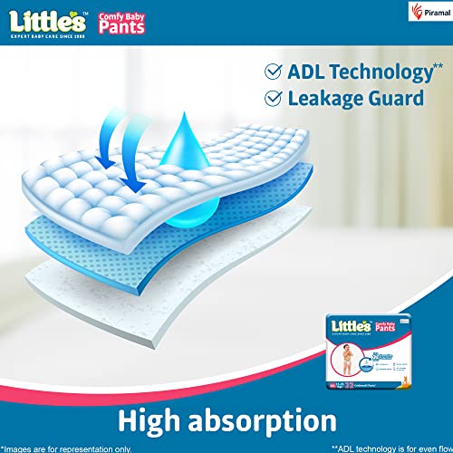 Little's Baby Pants Diapers Extra Extra Large (XXL) 15-25 kg 44 Units x Pack of 2 White with Wetness Indicator & 12 Hours Absorption