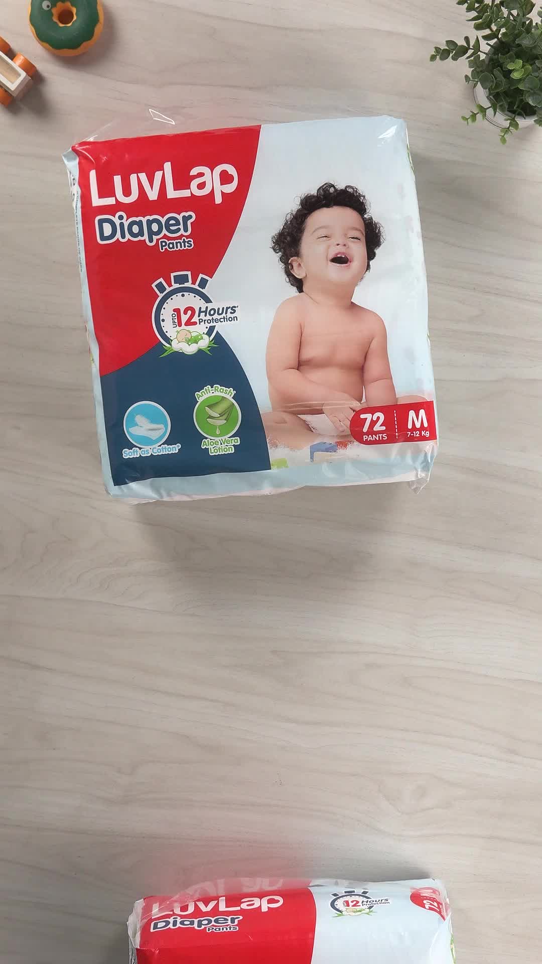 LuvLap Pant Style Baby Diapers, Medium (MD) For babies of 7 to 12Kg, Pack of 2 (72 Pants x 2 = 144 Pants),with Aloe Vera Lotion for rash protection, with upto 12hr protection, Diapers