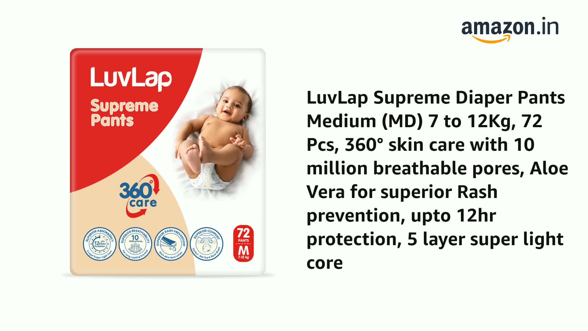 The Luvlap Supreme diaper is designed to provide your little one with the superior comfort and protection. With its soft breathable material and zero leakage mechanism your baby will stay dry and comfortable all day long. So you can have peace of mind knowing that your baby is protected. Aloe Vera lotion ensures zero irritation for the baby. Give your baby the best with the Luvlap Supreme Diaper!