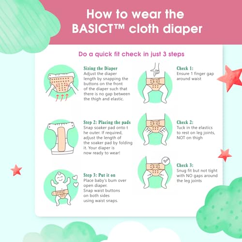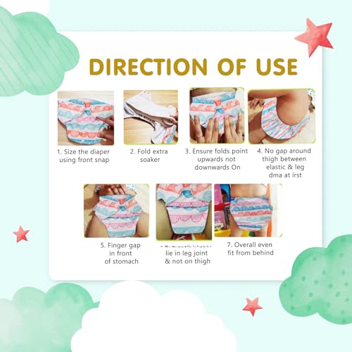 Mee Mee Reusable Baby Cloth Diaper, Double Leak Guard, High Absorption, Quick Dry, Stain-Proof Comfort & Protection, 3m+, Adjustable Waist & Height with snap Buttons, Absorbent Insert