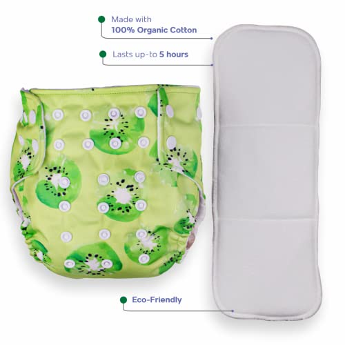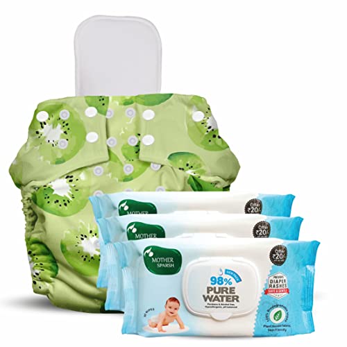 Mother Sparsh Combo of 98% Pure Water Based Wipes with Plant Fabric 80 pcs (Pack of 3) and Nappers Reusable Cloth Diaper with 1 Dry Absorbent Soaker Pad (Krazy Kiwi))