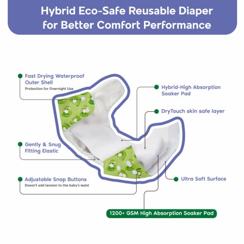 • REUSABLE CLOTH DIAPERS: Designed and developed using only the finest materials to bring you a Nappy experience for Babies & Parents. A premium range of Diapers with Hybrid Eco-Safe for Comfort Performance. Provide the goodness & convenience to your baby w