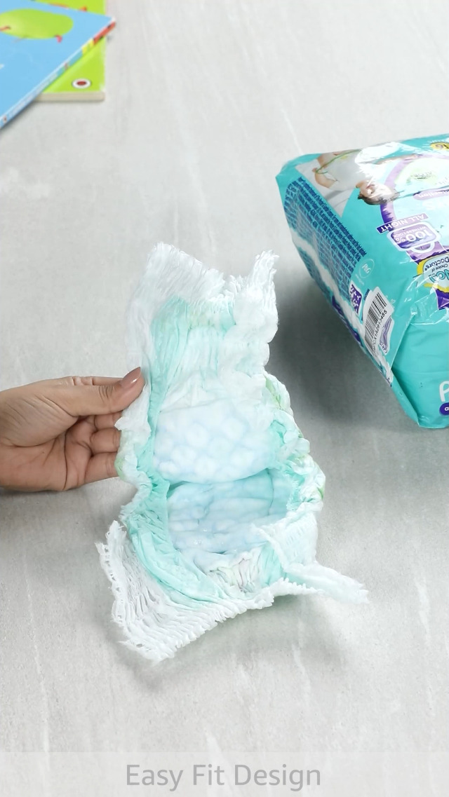 • Up to 12 hrs Absorption-Designed for soaking all-night urine with upto 2X Faster absorption speed keeping baby's bum dry