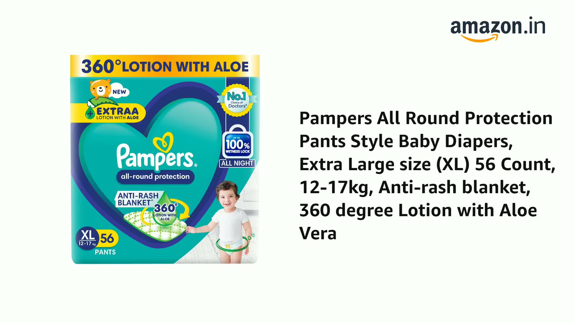 Pampers All Round Protection Pants Style Baby Diapers, Extra Large size (XL) 56 Count, 12-17kg, Anti-rash blanket, 360 degree Lotion with Aloe Vera