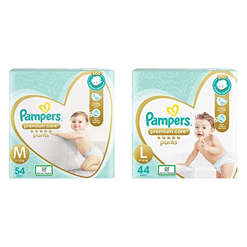 Pampers Premium Care Pants Diapers, Medium, 54 Count&Pampers Premium Care Pants Diapers, Large, 44 Count