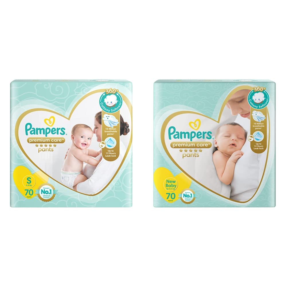 Pampers Premium Care Pants Diapers, Small, 70 Count&Pampers Premium Care Diapers, New Born, 70 Count
