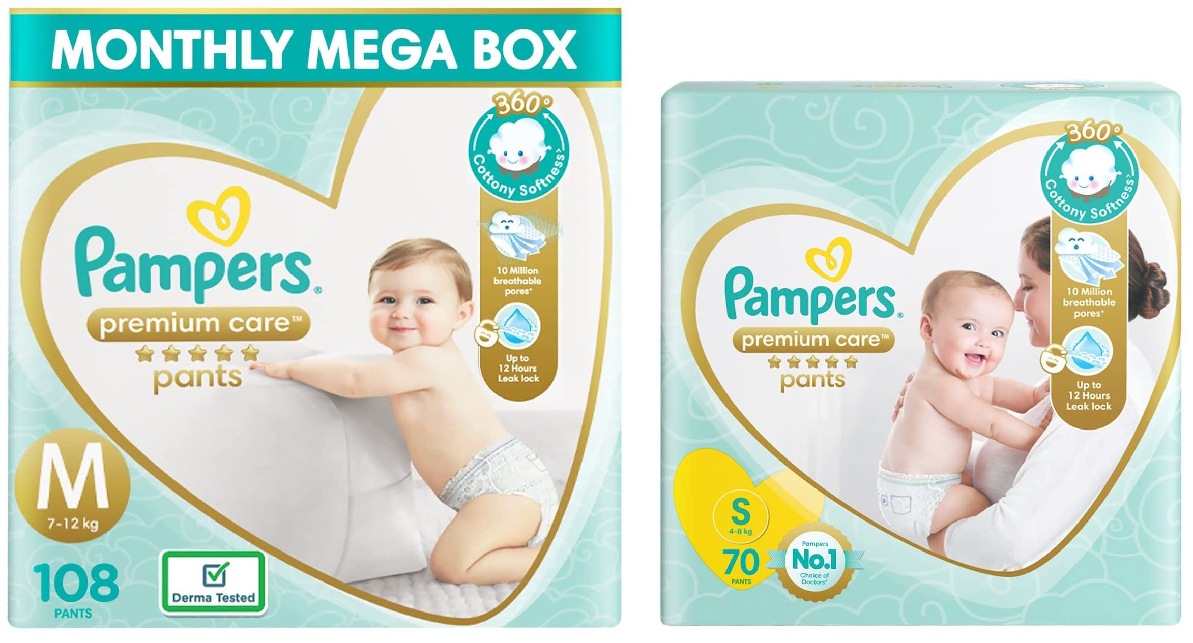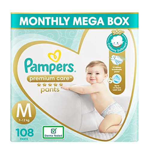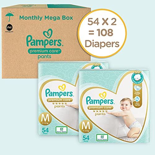 Pampers Premium Care Pants Diapers, Small, S 72 Count & Pampers Premium Care Pants Diapers Monthly Box Pack, Medium, 108 Count