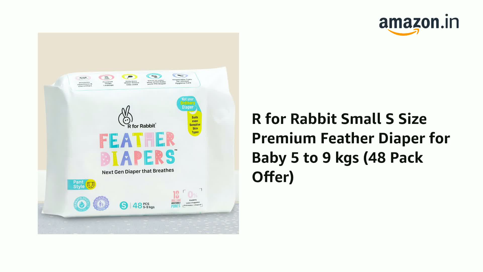 • Breathable Diaper: R for Rabbit Feather Small S Size Diapers for S size having 10 Million* Breathable pores which allows the air to easily pass through making the diapers highly breathable and acting as a rash guard for your baby by instantly locking mois