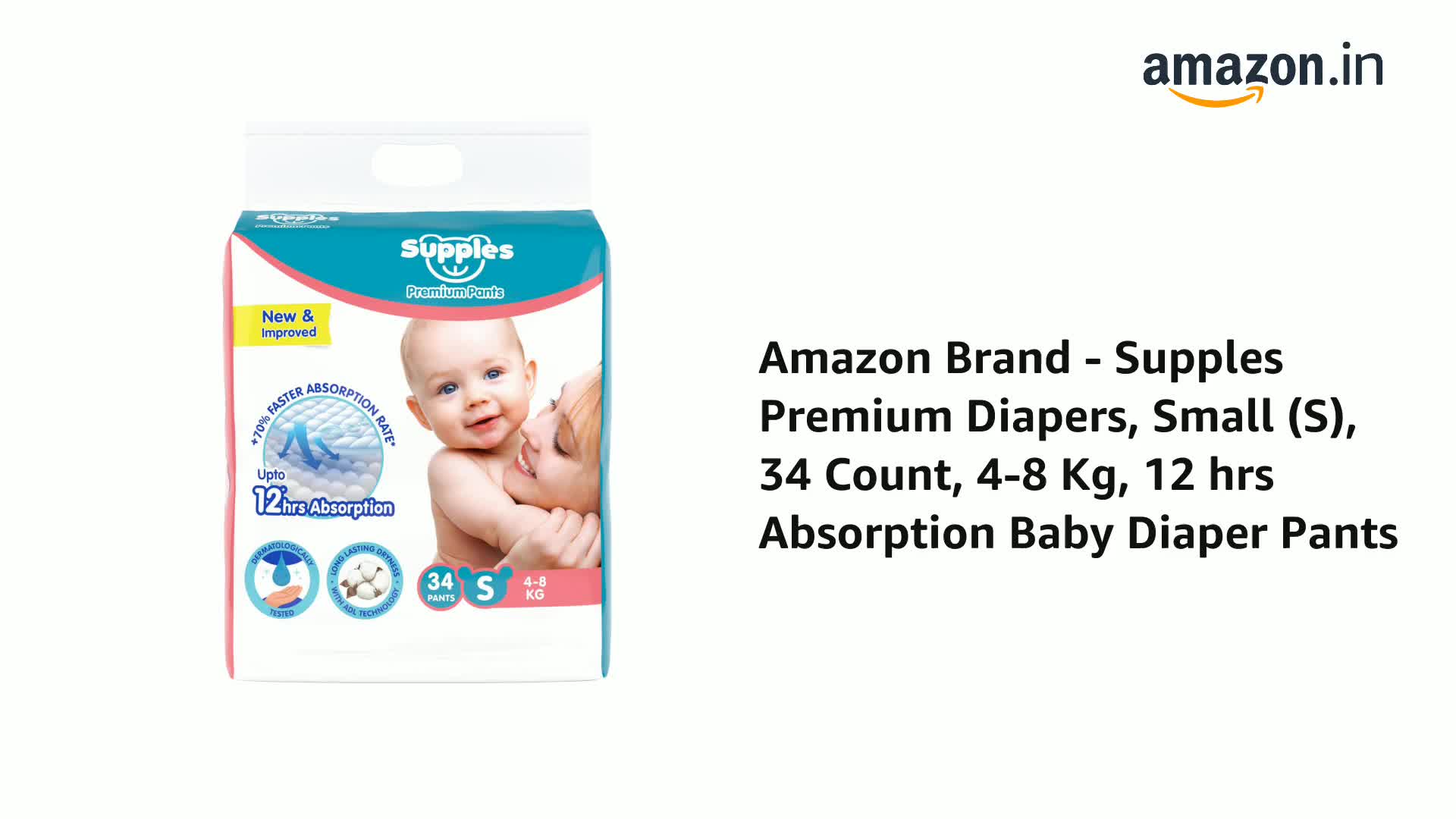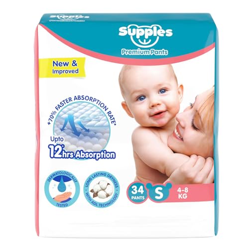 SUPPLES PREMIUM DIAPER PANTS: Choosing the diaper for your baby is an important step in ensuring your little one comfort during the day as well as overnight. We understand that nothing is more important than the comfort of your little baby. With Supples Premium diaper pants we want to keep your baby comfortable both in day as well as in night thus delivering happiness to every doorstep. Choosing the right diaper size based on baby weight is important. The diaper capacity may vary among babies depending on the volume of pee and posture. Available in sizes NB S M L XL XXL