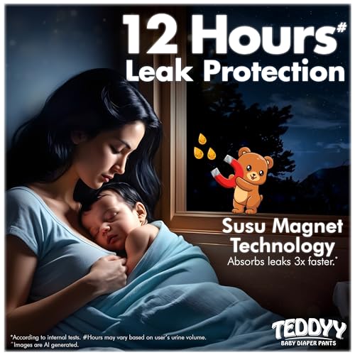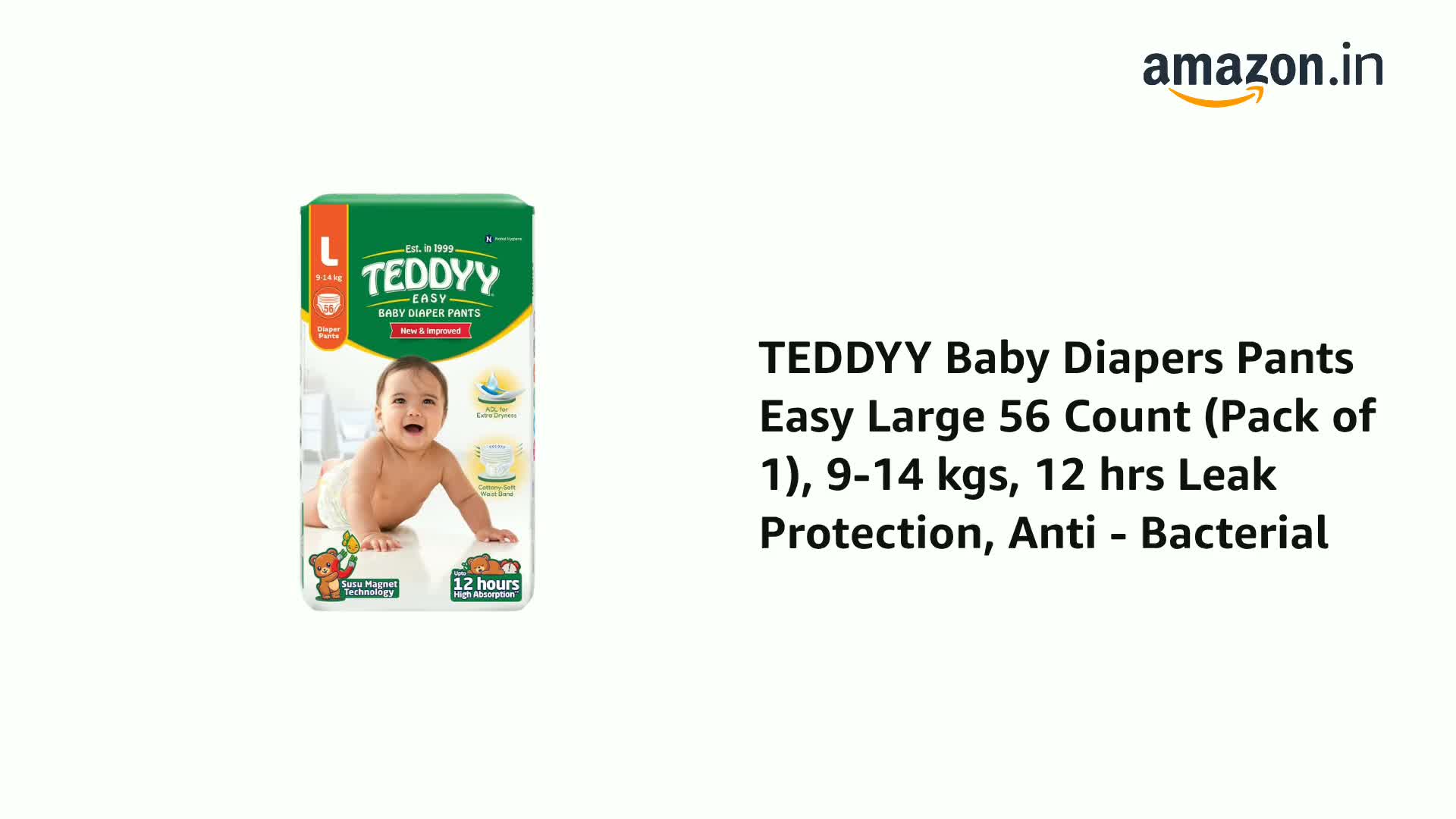 TEDDYY Baby Diapers Pants Easy Large 56 Count (Pack of 1), 9-14 kgs, 12 hrs Leak Protection, Anti - Bacterial