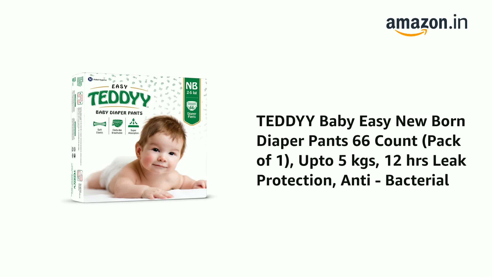 TEDDYY Baby Easy New Born Diaper Pants 66 Count (Pack of 1), Upto 5 kgs, 12 hrs Leak Protection, Anti - Bacterial