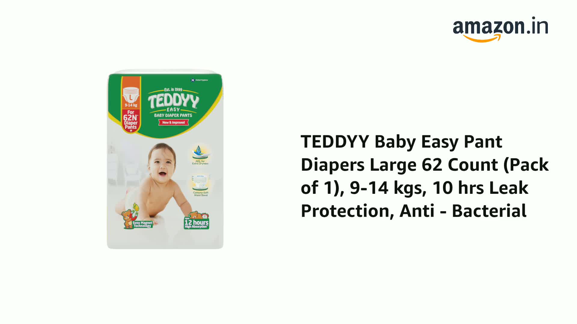 TEDDYY Baby Easy Pant Diapers Large 62 Count (Pack of 1), 9-14 kgs, 10 hrs Leak Protection, Anti - Bacterial