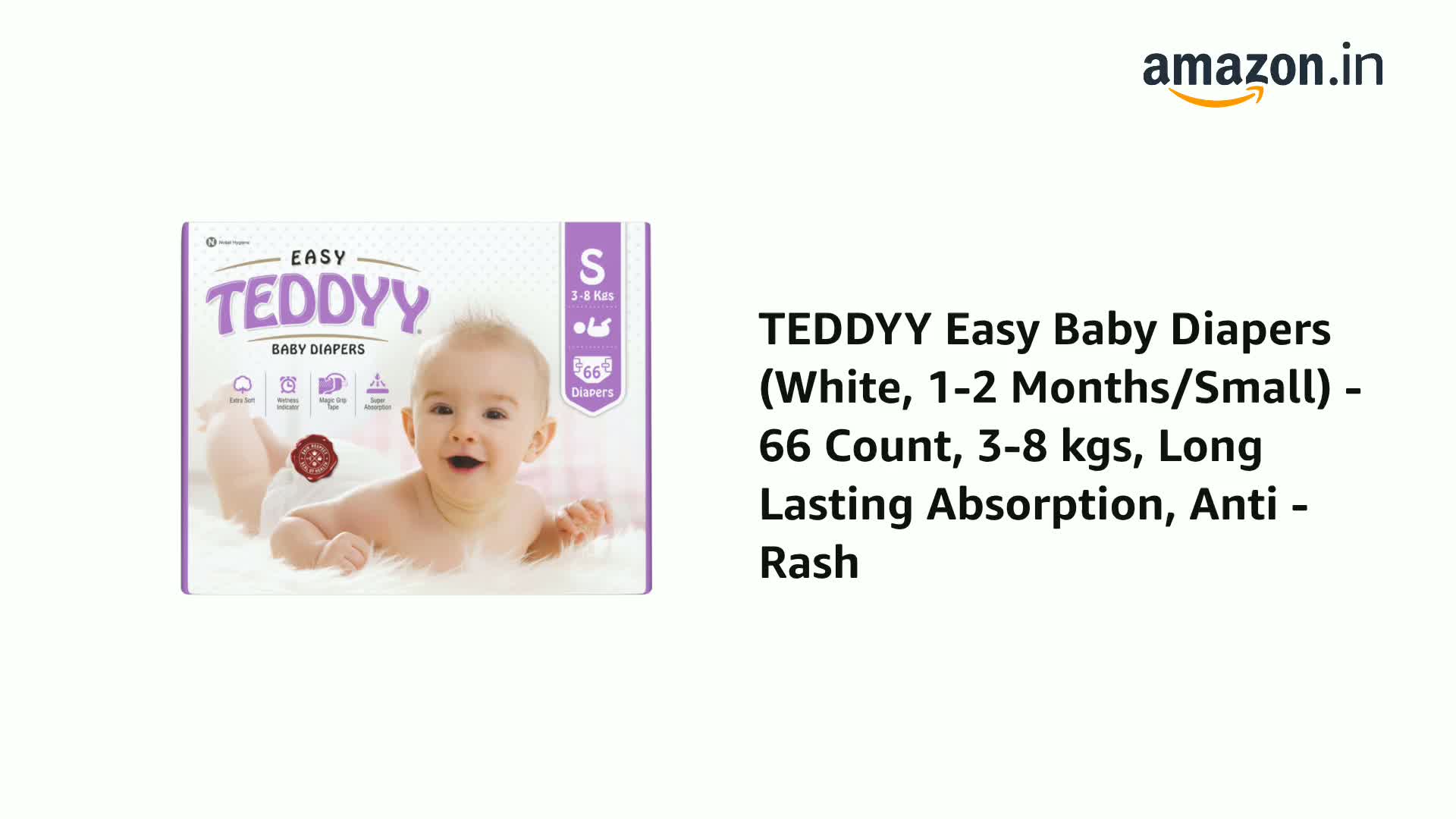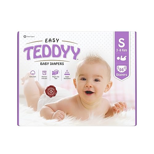 TEDDYY Easy Baby Diapers (White, 1-2 Months/Small) - 66 Count, 3-8 kgs, Long Lasting Absorption, Anti - Rash