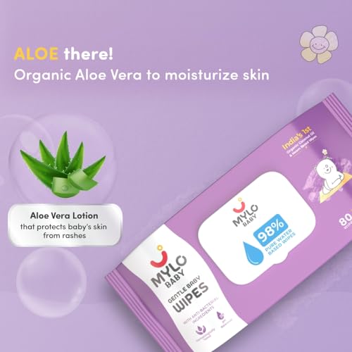 HomeBabyDiaperingBaby WipesMylo Gentle Baby Wipes with Lid (80 Wipes x 9 Pack - 720 Water Wipes) | Natural Wet Wipes with Organic Coconut Oil & Neem| Cotton Cloth with Extra Thick