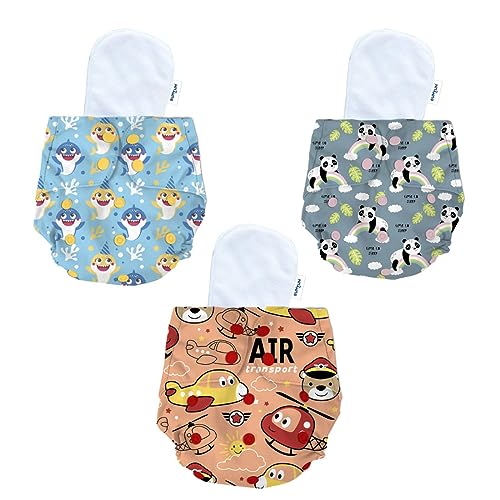 Bumtum Baby Diaper | 0-3 Yrs Baby Freesize | Pack of 3, New Born Baby Diaper, Cloth Diaper, Waterproof Reusable Diaper, 5hrs Absorbency, Washable, Cotton, Extra Soft (Baby Shark, Air & Panda)
