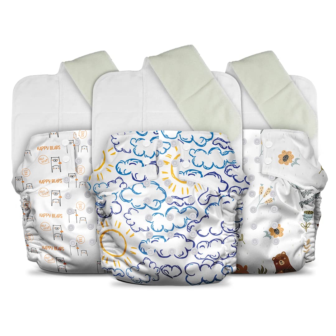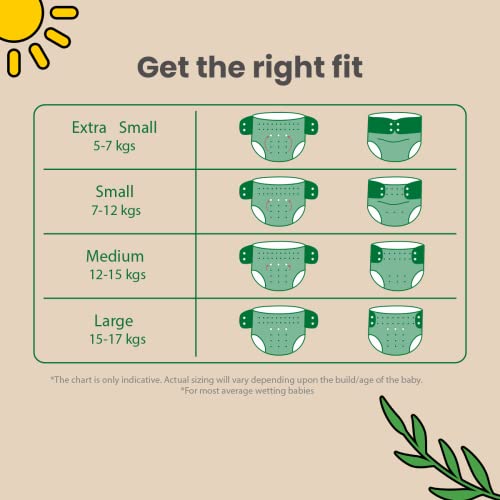 ADJUSTABLE BUTTONS TO FIT ALL SIZES: Our Diapers are made to fit all babies from 3 months to 3 years with 4 size varieties. Size XS for babies weighing 5-7 kgs S for 7-12 Kgs M for 12-15Kgs and L for 15-17 Kgs. The adjustable button design ensures a perfe