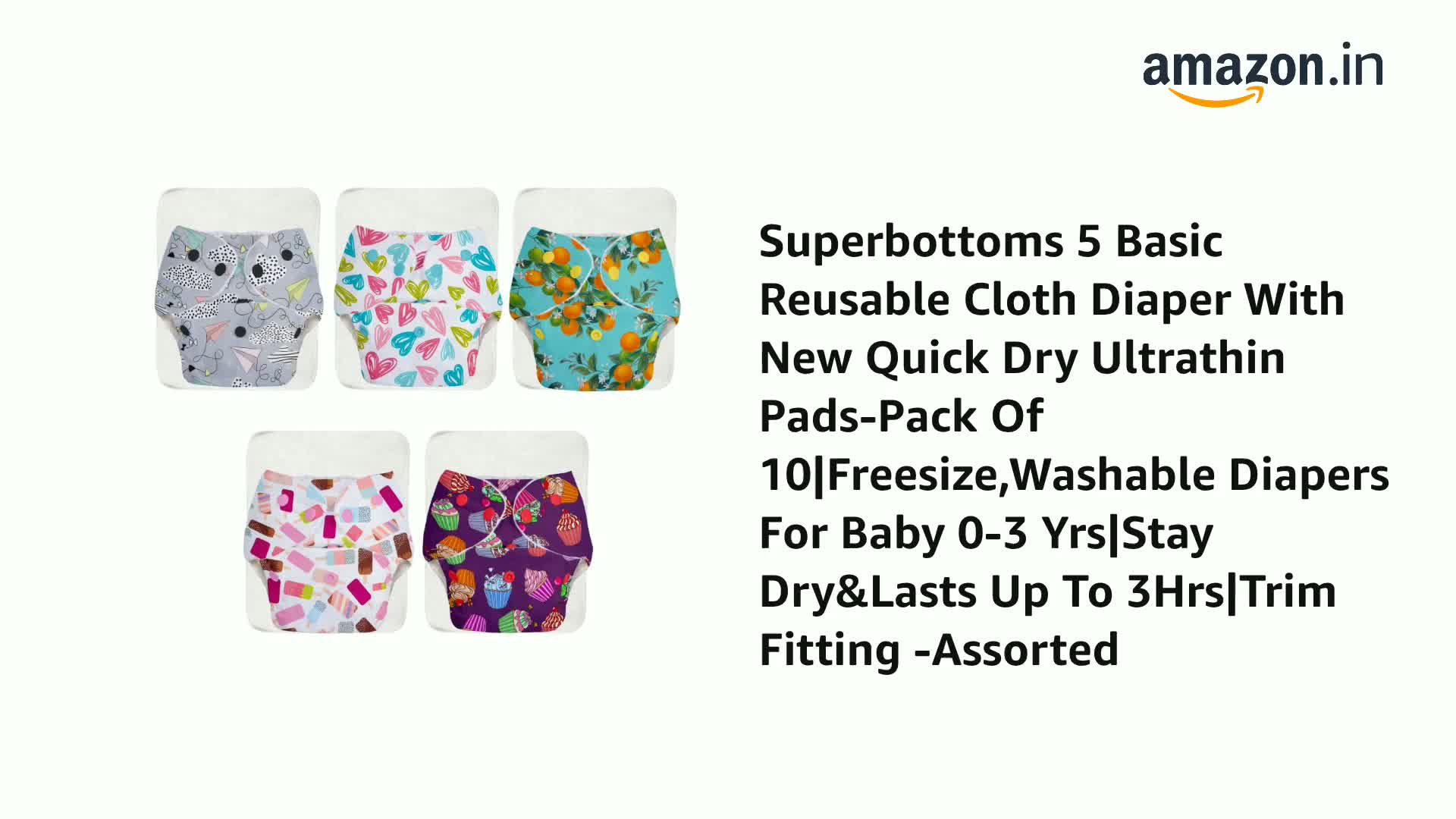 HomeBabyDiaperingCloth DiapersSuperbottoms 5 Basic Reusable Cloth Diaper With New Quick Dry Ultrathin Pads-Pack Of 10|Freesize,Washable Diapers For Baby 0-3 Yrs|Stay Dry&Lasts Up To 3Hrs|Trim Fitting -Assorted