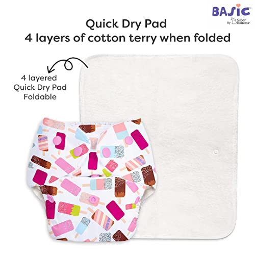 SuperBottoms BASIC Reusable 2 Cloth Diapers with Quick Dry UltraThin pads | 100% cloth Freesize, washable Diapers for baby 0-3 Yrs |Stay Dry & Lasts up to 3Hrs | Trim Fitting
