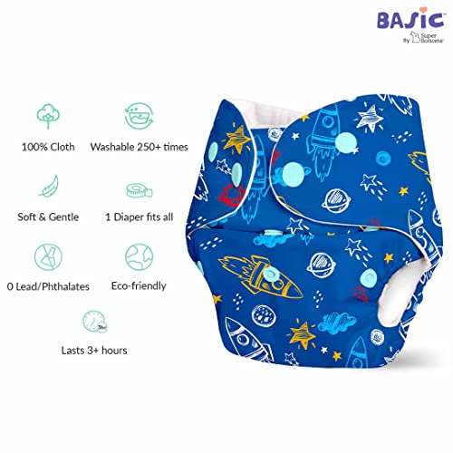 The perfect day diaper is here! Introducing BASIC Cloth Diapers with Quick Dry Pads the easy eco-friendly choice for busy parents! Made with waterproof polyester lining outside they're washable and reusable over 250 times saving money and the planet! The Quick Dry Pads made with cotton and polyester fleece keep baby comfy and dry for over 3 hours. Adjustable snaps ensure a snug fit for babies aged 3 months to 3 years. Tested for safety and made with love in India by SuperBottoms a brand trusted by over 20 Lakh parents for gentle chemical-free baby care products. Simple to use gentle on the skin and made for convenience BASIC Cloth Diapers with Quick Dry Pads are the smart sustainable choice for your baby's comfort.