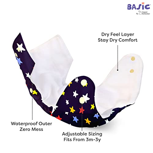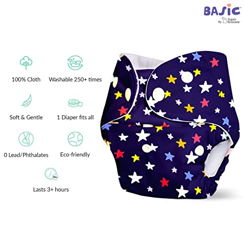 BASIC Cloth Diaper Adjustable Diaper that fits from 3 months - 3 years (5kg - 17kg) Contents - 1 Waterproof Outer Shell - 1 Quick Dry UltraThin Pads Features - CPSIA (US) certified cloth diapers. Tested-free for lead and phthalates. - Waterproof washable & reusable cloth diaper that fits babies from 3 months to 3 years. - It lasts up to 3 hours for average wetting babies. - Keeps the baby dry and comfortable.