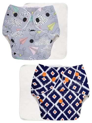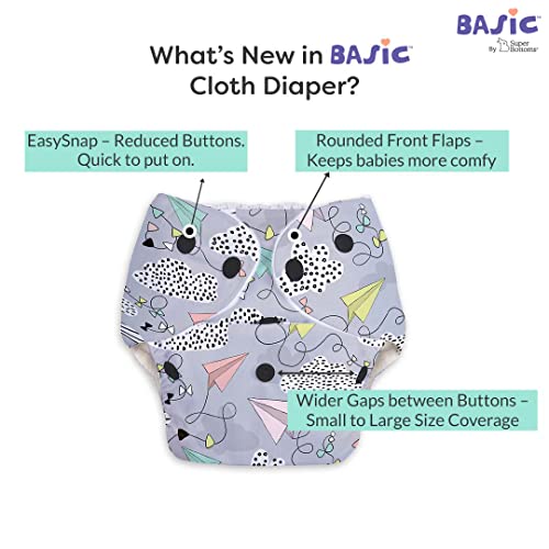 SuperBottoms BASIC Pack of 2 Assorted CPSIA Certified Cotton Cloth Diaper For Baby | Washable & Reusable | 0-3 Years | Freesize | Adjustable | Reduces Rash | With Quick Dry Pad/Insert