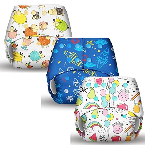 SuperBottoms BASIC Pack of 3 Reusable Cloth Diaper for babies 0-3 Years | Freesize Adjustable, Reusable Cloth Diaper | Outer Shell only | (WITHOUT dry feel pad/soaker/insert) | Print may vary