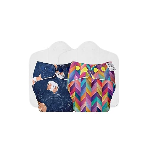 SuperBottoms Combo Pack of 4 (2 Shell + 2 Insert) Freesize UNO - Reusable waterproof Adjustable cloth diaper for babies from 5-17kgs-cloth diapers with Dry feel Organic cotton Pad-Option 4