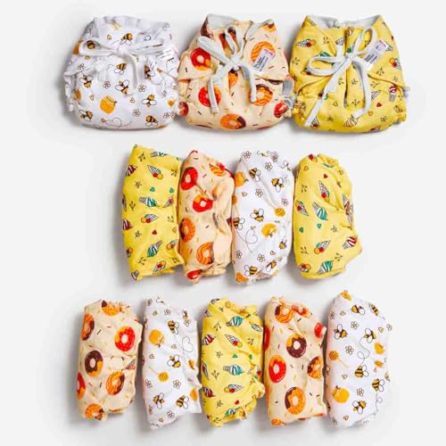 SuperBottoms First Love DryFeel Langot¢ for Newborn Baby | No Mess Langot | Premium Cotton Padding (No Sponge) | Ultra-Soft | Mess-Free Diaper-Free Time | 0-9M | (Sweet Tooth Pack of 12 Large)