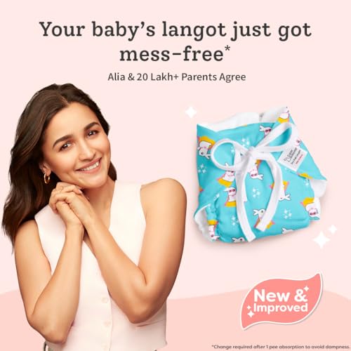 SuperBottoms First Love DryFeel Langot™ for Newborn Baby | No Mess Langot | Premium Cotton Padding (No Sponge) | Ultra-Soft | Mess-Free Diaper-Free Time | Washable & Reusable | 0-9M