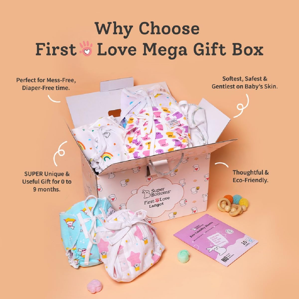 SuperBottoms First Love Mega Gift Box | Softest Breathable & Gentlest langots for your baby | Baby shower gift pack | No Mess Langots for Newborns between 0 to 9 months | Pack of 31 (Size: Small)