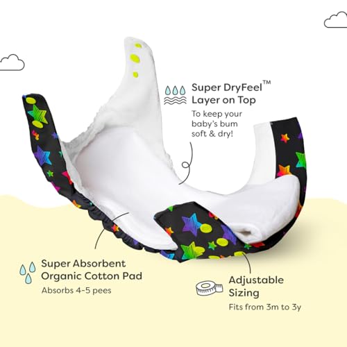 SuperBottoms NEW UNO Freesize Cloth Diaper | Cloth diaper for babies 3M to 3Y | Washable & Reusable cloth diaper | Comes with cloth diaper insert | 1 Diaper and 1 Organic cotton Soaker-Assorted