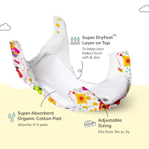 SuperBottoms NEW UNO Freesize Cloth Diaper | Cloth diaper for babies 3M to 3Y | Washable & Reusable cloth diaper | Comes with cloth diaper insert | 1 Diaper and 1 Organic cotton Soaker